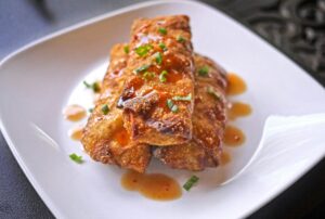 84Spis Treści ToggleCo to są sajgonki?Jakie są rodzaje sajgonek?Różnice między smażonymi sajgonkami a spring rollsJakie składniki są potrzebne do przygotowania sajgonek?Podstawowe składnikiOpcjonalne dodatkiJak przygotować farsz do sajgonek?Kroki przygotowania farszuJak zawijać sajgonki?Proces zawijaniaJak smażyć sajgonki?Proces smażeniaJak przygotować sos do sajgonek?Kroki przygotowania sosuIle czasu zajmuje przygotowanie sajgonek?Z czym podawać sajgonki?Propozycje sosów do sajgonekCo to są sajgonki?Photo by Alexandra Tran on UnsplashSajgonki, pochodzące z Wietnamu, to danie, które zdobyło uznanie na całym globie. Składają się z cienkich naleśników z papieru ryżowego wypełnionych farszem mięsnym i warzywnym. Najczęściej używa się do nich mielonej wołowiny lub wieprzowiny oraz takich warzyw jak marchewka, cebula czy grzyby mun. Całość wzbogacają przyprawy takie jak imbir i czosnek. Kluczowym elementem jest papier ryżowy, który po namoczeniu staje się elastyczny i łatwy do zawijania.Istnieje kilka sposobów przygotowania sajgonek:możemy je usmażyć na oleju, co nadaje im chrupkości,lub podać jako świeże spring rolls bez smażenia – lżejsze i bardziej zdrowe.Smażone sajgonki często serwowane są z sosami do maczania:słodko-pikantnym sosem chili,czy sosem sojowym z dodatkiem limonki.Wielką zaletą sajgonek jest ich wszechstronność – można je dostosować do własnych preferencji smakowych, dodając różne rodzaje mięsa lub tworząc wersje wegetariańskie. Dzięki użyciu papieru ryżowego są również odpowiednie dla osób unikających glutenu. To świetna przekąska na imprezę albo lekki posiłek w ciągu dnia.Jakie są rodzaje sajgonek?Photo by Joshua Hoehne on UnsplashSajgonki występują w wielu wariantach, z których każdy ma swoje charakterystyczne cechy. W kuchni wietnamskiej najczęściej trafiamy na dwie odmiany:smażone,surowe.Chả giò, czyli wersja smażona, jest chrupiąca dzięki głębokiemu smażeniu na oleju. Farsz składa się z mięsa i warzyw, wzbogacony przyprawami takimi jak imbir czy czosnek.Gỏi cuốn, znane również jako spring rolls, to wersja niesmażona – lżejsza i bardziej dietetyczna. Zawiera świeże składniki: krewetki, miętę oraz warzywa zawinięte w wilgotny papier ryżowy. Ponieważ nie wymaga smażenia, jest doskonałym wyborem dla osób szukających zdrowszych opcji.W różnych zakątkach Azji Południowo-Wschodniej można spotkać inne interpretacje sajgonek z nadzieniem z owoców morza lub egzotycznymi warzywami. W Polsce najbardziej popularna jest wersja wietnamska, co wynika z łatwego dostępu do składników takich jak makaron ryżowy czy grzyby mun.Każda odmiana sajgonek może być serwowana z różnorodnymi sosami do maczania, co jeszcze bardziej podkreśla ich smakowitość i uniwersalność w azjatyckiej kuchni.Różnice między smażonymi sajgonkami a spring rollsSmażone sajgonki, znane również jako chả giò, zyskują swoją chrupkość dzięki zanurzeniu w gorącym oleju. Ich wnętrze to smakowita kompozycja:mięsa,warzyw,imbiru,czosnku.Istnieje także alternatywa – gỏi cuốn, czyli spring rolls, które wyróżniają się tym, że nie są smażone. Dzięki temu są lżejsze i korzystniejsze dla zdrowia. Ich skład to:świeże krewetki,mięta,warzywa,delikatny papier ryżowy.Chociaż smażone sajgonki są bardziej kaloryczne i cieszą się dużą popularnością w kuchni wietnamskiej, to spring rolls często wybierają osoby preferujące dietetyczne posiłki.Jakie składniki są potrzebne do przygotowania sajgonek?Photo by Eranjan on UnsplashAby przygotować smakowite sajgonki, niezbędne są pewne kluczowe składniki. Zacznij od:16 arkuszy papieru ryżowego,350 g mięsa mielonego – idealnie sprawdzi się wołowina lub wieprzowina,60 g cienkiego makaronu ryżowego,2 łyżki oleju do smażenia.Nie zapomnij o świeżej cebuli i marchwi, które wzbogacą smak oraz teksturę potrawy. Dodatkowo, około 10 g suszonych grzybów mun będzie doskonałym uzupełnieniem – pamiętaj tylko, aby je wcześniej namoczyć.Istotnym elementem przyprawienia są:20 g imbiru,2 ząbki czosnku,dwie łyżki sosu sojowego,dwie łyżki sosu rybnego.Aby uzyskać odpowiednią konsystencję farszu, warto rozważyć dodanie jajek. Zioła takie jak:natka pietruszki,kolendra,szczypiorek,listki miętynadadzą daniu świeży aromat.Na zakończenie przygotuj około 250 ml oleju, aby usmażyć sajgonki na złoty kolor. Te składniki stanowią podstawę tradycyjnych sajgonek wietnamskich z wyjątkowym smakiem i chrupiącą strukturą po usmażeniu.Podstawowe składnikiBazą sajgonek jest delikatny papier ryżowy, który otula aromatyczny farsz. W jego wnętrzu znajdziemy:mięso mielone, najczęściej wołowinę lub wieprzowinę,makaron ryżowy, który dodaje potrawie odpowiedniej tekstury,warzywa takie jak cebula i marchewka,grzyby mun, które wzbogacają smak dania,przyprawy: imbir i czosnek.Kluczowe dla autentycznego wietnamskiego smaku są sos sojowy oraz sos rybny. Świeżości każdemu kęsowi nadają zioła: natka pietruszki, szczypiorek czy mięta. Aby uzyskać chrupiącą skórkę, niezbędne jest użycie oleju do smażenia.Opcjonalne dodatkiOpcjonalne dodatki do sajgonek mogą znacząco wzbogacić ich smak, dostosowując danie do indywidualnych preferencji. Oto kilka propozycji:krewetki wprowadzają subtelność i morski aromat,egzotyczne warzywa, takie jak kapusta pekińska czy papryczka chili, dodają chrupkości i odrobinę pikanterii,szynka wieprzowa to doskonała propozycja dla miłośników mięsnych akcentów, idealnie komponująca się z pozostałymi składnikami,tofu stanowi świetną alternatywę dla mięsa mielonego,przyprawy i zioła, takie jak kolendra czy świeża mięta, nadają sajgonkom niepowtarzalny charakter.Jak przygotować farsz do sajgonek?Photo by Joshua Hoehne on UnsplashKroki przygotowania farszuAby stworzyć nadzienie do sajgonek, rozpocznij od:podsmażeni